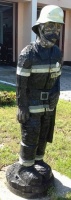 Перед пожарной частью на ул. Белостоцкая (Białostocka), 2 стоит на страже деревянный пожарный.