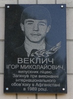 Мемориальная доска воину-интернационалисту Векличу И.Н. в Решетиловке