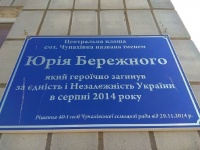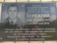 Мемориальная доска сержанту Вооружённых сил Украины Юрию Александровичу Бережному,
