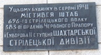 Памятная доска в честь 696 полка 383 шахтерской дивизии в г.Донецке