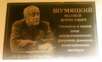Памятная доска М.Б.Шумяцкому в г.Донецке