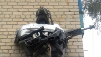 В г.Макеевке на территории поселка Криничкая на козырьке дома № 19 по улице Вавилина установлена скульптура «Робокопа».