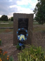 На въезде в с. Орловка со стороны г. Бахчисарай, справа от автодороги можно увидеть небольшой обелиск. К нему ведет тропинка.