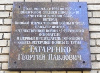 В г.Ждановке Донецкой области на здании общеобразовательной школы № 1, расположенной по улице Школьной, 1-А, установлена памятная доска Г.П.Татаренко.