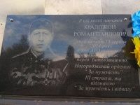 Мемориальная доска солдату Вооруженных сил Украины Роману Павловичу Крадожону, погибшему в АТО на востоке Украины находится на здании общеобраз