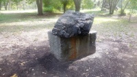 В Калининском районе г. Донецк на территории ботанического сада расположена картина на камне.