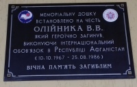 На крыльце Золочевской СШ № 2 (ул. Виктора Клименко, 63) установлена памятная доска Олийнику В.В.