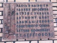 Памятная доска Г.Т.Береговому на здании аэроклуба в г.Енакиево
