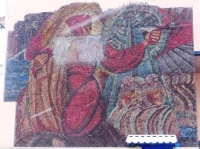 В г.Енакиеве на здании торгового центра «Космос», расположенного по улице Тиунова, 99, выполнены мозаичные панно.