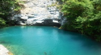В Гагрском районе Абхазии на 13-м километре автодороги (SH11) к озеру Рица расположено Голубое озеро.