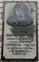 Мемориальная доска Савчуку А.В (рядовой полка Днепр-1)