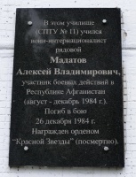 Мемориальная доска воину-интернационалисту А.Ф.Мадатову в г.Керчи
