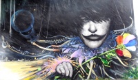В Ворошиловском районе г.Донецка на проспекте Труда между улицами Артема и Постышева находится граффити «Арлекин».