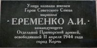 Аннотационная доска на ул. А.И.Ерёменко в г.Керчи