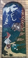 В Кировском районе г.Донецка по улице Кирова, 197 расположен детский сад № 97 «Красная шапочка», фасад которого украшают два мозаичных панно.