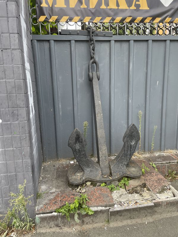 Возле въездных ворот на территорию бывшего закода "Ленинская кузня" (ул. Жилянская, 107) "брошен" якорь. По констркции это якорь Холла, вероятно, весом в 800 кг. Такие якоря были стандартными в судостроении и, даже, имели свой ГОСТ.