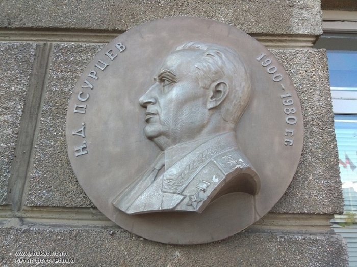 Никола́й Демья́нович Псу́рцев (23 января (4 февраля) 1900, Киев - 9 февраля 1980, Москва) — советский государственный и военный деятель, генерал-полковник войск связи, министр связи СССР. Родился 23 января (4 февраля) 1900 года в Киеве в русской крестьянской семье. С сентября 1915 года был учеником телеграфиста, затем телеграфистом станции Поныри Курской железной дороги, станции Курск. С февраля по декабрь 1918 года стал красноармейцем отряда Кожевникова, Украинский фронт. С декабря 1918 года по июль 1920 года служил телеграфистом штаба 9-й армии, в должности комиссара телеграфа армии. Июль 1920 - январь 1921 - комиссар связи 12-й армии. Январь - июнь 1921 - комиссар отдела Управления связи штаба Украины и Крыма. Июнь - ноябрь 1921 -комиссар 6-го полка связи. В ноябре 1921 года стал слушателем Высшей военной школы связи Красной Армии. С июля 1924 года - заместитель начальника связи Сибирского военного округа. С ноября 1927 года - командир и комиссар 10-го полка связи. В 1930-1934 годах проходил учёбу в Военной электротехнической академии связи. С февраля 1935 года - заместитель начальника отдела боевой подготовки Управления связи РККА. С января 1936 года - начальник узла связи Наркомата обороны СССР. С мая 1937 года - начальник Управления междугородной телефонно-телеграфной связи Наркомата связи СССР. С марта 1938 года - уполномоченный Наркомата связи СССР по Дальневосточному краю. С апреля 1939 года - начальник учебного отдела Военной электротехнической академии РККА. С декабря 1939 года - начальник связи Северо-западного фронта. С апреля 1940 года - начальник учебного отдела Военной электротехнической академии РККА. С июня 1940 года - заместитель начальник Управления связи РККА. С июля 1941 года - начальник управления связи Западного фронта. С февраля 1944 года - первый заместитель начальника Главного управления связи РККА. С апреля 1946 года - начальник связи Генерального штаба ВС СССР. С ноября 1947 года по март 1948 года - первый заместитель министра связи СССР. С марта 1948 года сентябрь 1975 года - министр связи СССР. С сентября 1975 года - персональный пенсионер союзного значения. Депутат Верховного совета СССР 4-9 созывов (1954-1979). Кандидат в члены ЦК КПСС в 1961-1976 годах, генерал-полковник войск связи (1945). Умер 9 февраля 1980 года в Москве. Похоронен на Новодевичьем кладбище. Награждён: званием Героя Социалистического Труда (3.02.1975); 5 орденами Ленина (21.02.1945; 03.02.1960; 18.07.1966; 03.02.1970; 03.02.1975); орденом Октябрьской Революции (01.02.1980); 4 орденами Красного Знамени (21.03.1940; 02.01.1942; 03.11.1944; 24.06.1948); орденом Кутузова 1-й степени (08.09.1945) и 2-й степени (28.09.1943); орденом Суворова 2-й степени (09.04.1943); Рыцарь-Командор Ордена Британской Империи (Великобритания, 1944); медалями. Источник Источник
