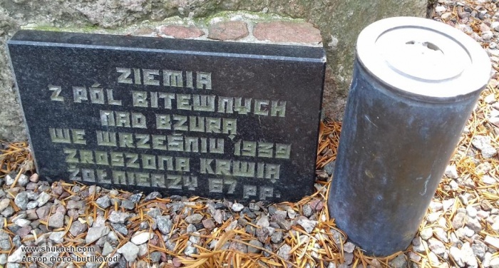 "Земля с полей битв над Бзурой в сентяре 1939, орашонная кровью солдат 67 пп."