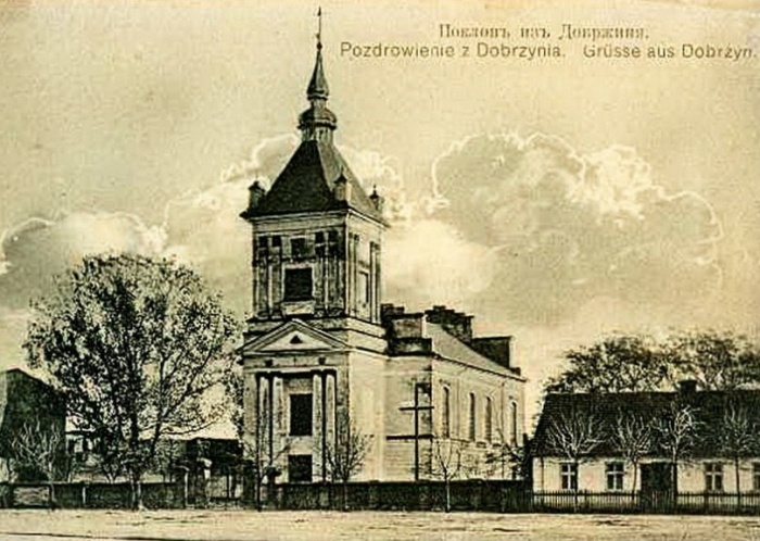 В 1823-1827 гг. благодаря материальной помощи владельца имения в соседнем Соколове (Sokołowо) Антония Выбраницкого (Antoni Wybraniecki) был построен костёл. Это было строение с одним нефом в классическом стиле, изначально без башни, которая была добавлена в 1886 г. С 1860-х гг. здесь жил наместник прихода Успения Пресвятой Девы Марии в Дульске (Dulsk) ( к ней принадлежали Добжинь-над-Дрвенцей и соседние села до 1909 г.). В 1880-х гг. был построен пресвитерий. В 1909 г. епископ Плоцкий Антоний Юлиан Нововейский (Antoni Julian Nowowiejski) учредил отдельную парафию, первым священником которой был о. Чеслав Рогацкий (Czesław Rogacki). В годы его пастырской работы (1909-1932) в храме была сделана цветная роспись, созданы барельефы пунктов «Крестного пути», установлены колокола и построен викарий.