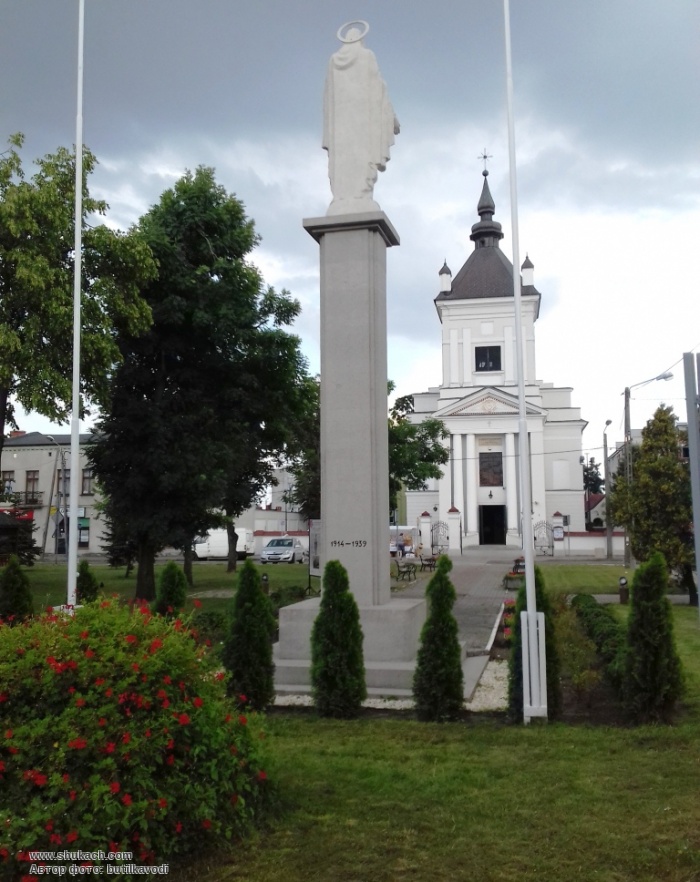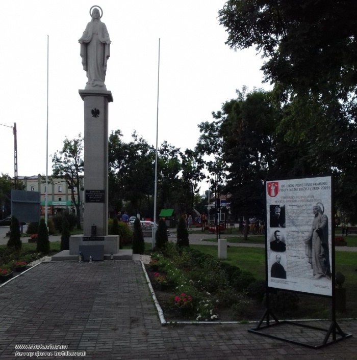На пл. Тысячелетия, перед костелом св. Катериты стоит на высоком постаменте-колонне скульптура Богоматери.