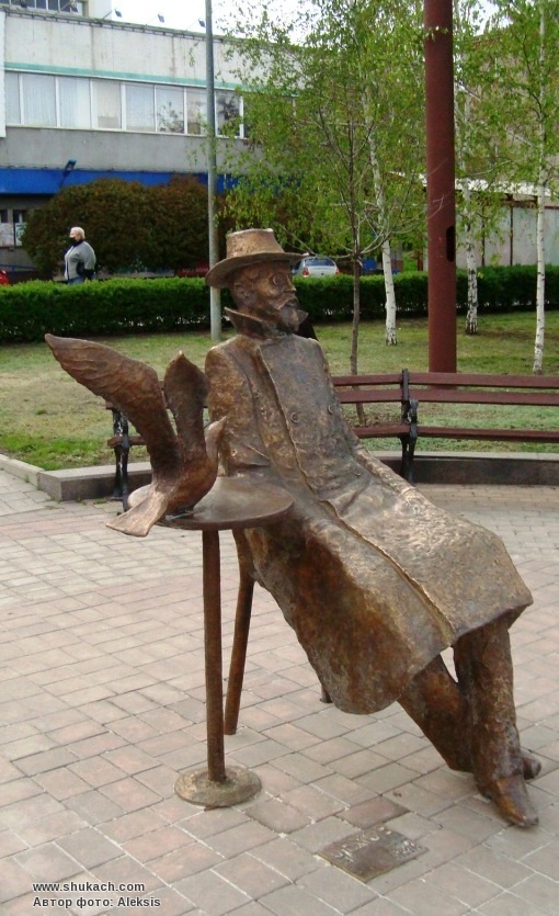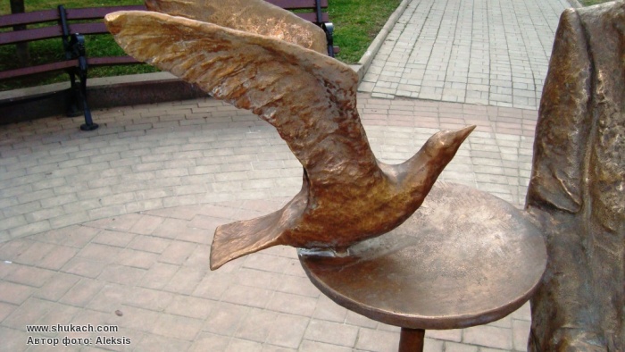 Памятник изображает выдающегося прозаика и драматурга, сидящего на лавочке и задумчиво смотрящего на водную гладь, рядом на столике обосновалась чайка. Автором скульптурной композиции «Чайка» стал известный донецкий художник и скульптор Равиль Акмаев.