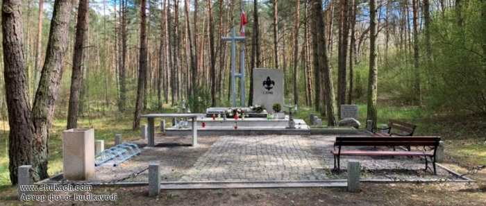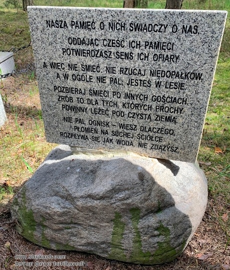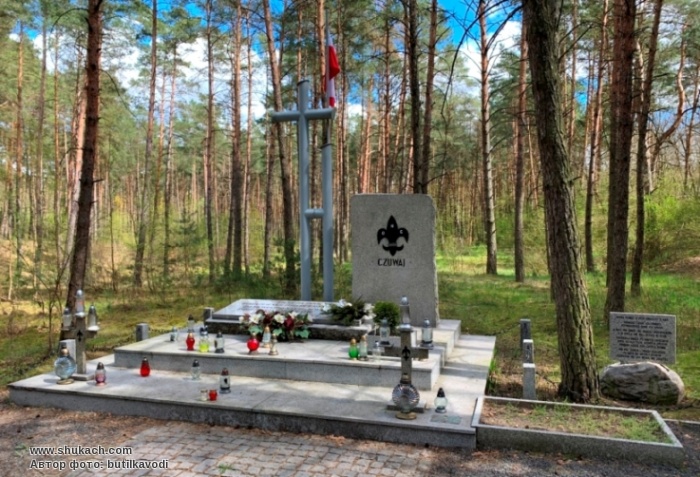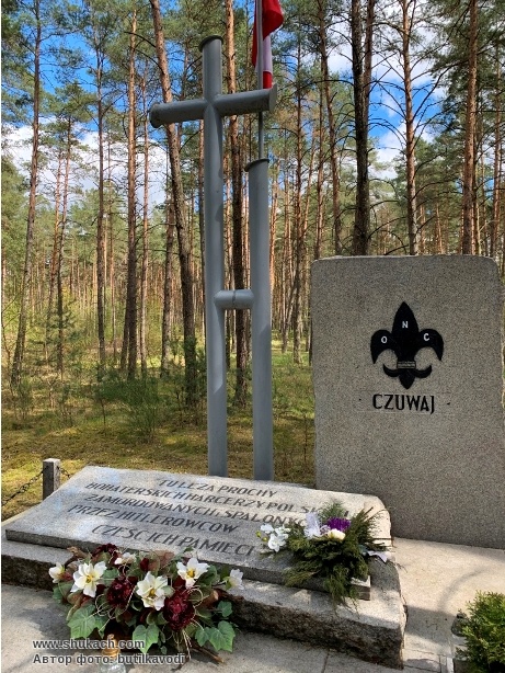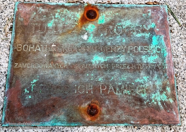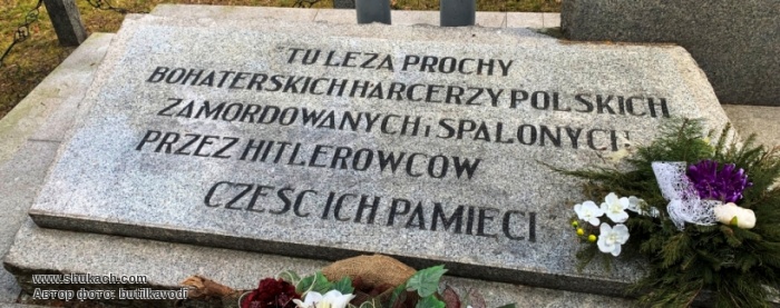 "Тут лежат прахи героических скаутов польских, казненных и соженных гитлеровцами. Честь их памяти"