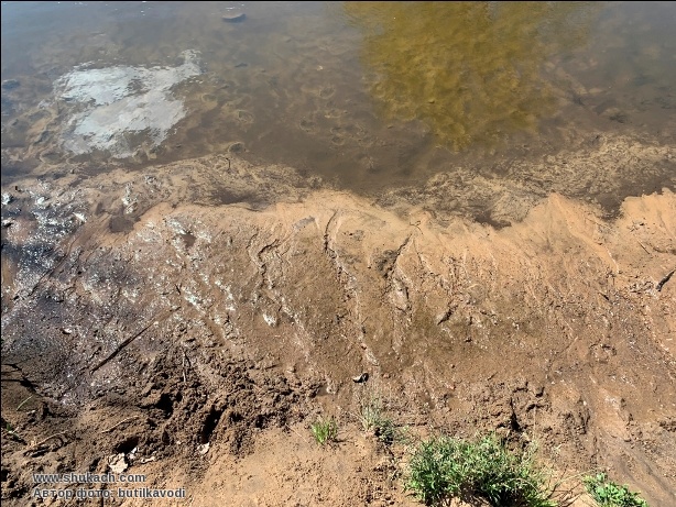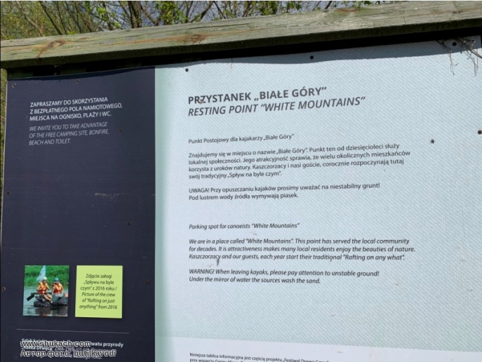 Почти у самого уреза воды из песчаного берега постоянно вытекают грунтовые воды. Тут можно устроить источник для набора воды, но в Польше это почему-то не принято... Выход грунтовых вод делает дно в этом месте мягким, охлаждая воду, хотя она тут и так не особо нагревается из-за довольно быстрого течения реки и протекания по лесам - в тени, что не способствует нагреванию воды в теплый сезон, но освежиться в самый зной - самое оно!