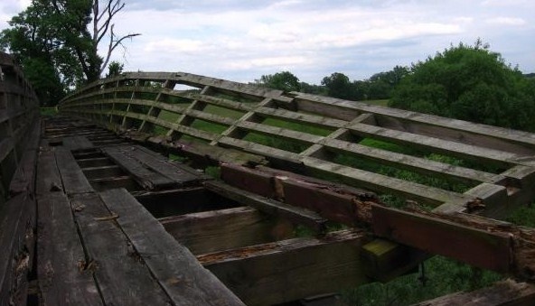 В настоящее время мост деревянный на стальных пролетах стоит на двух железобетонных опорах в русле реки и по одной стальной на каждом берегу. Мост в настоящее время используется только для пешеходов и малого колесного транспорта (через него проходит велосипедный туристический маршрут). Является памятник как единственный сохранившийся мостом XIX века такого типа в регионе.