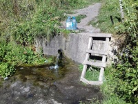 Із залізобетонної стіни водоскиду В'яливського водосховища витікая джерело.