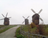 Дерев’яні млини в селі Водяники на Черкащині дуже схожі на старовинні вітряні конструкції.
