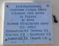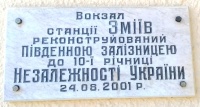 Пам'ятна дошка залізничникам на з\в Зміїв