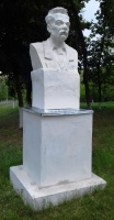 На початку вул. Макаренка стоїть на постаменті бюст радянського письменника Максима Горького (Пєшкова).