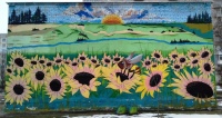 В одному з дворів 7-го мікрорайону, біля будинку № 25 на Московському пр-ті, колись сіра стіна технічної будівлі зараз сяє соняшниковими барвами та зеленню хвойного ліс