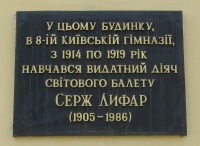 м. Київ. Меморіальна дошка Сержу Лифарю.