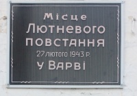 смт Варва. Меморіальна дошка Лютневому повстанню.