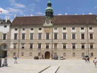 Швейцарська брама старого Хофбурга була побудована в 1552 році за наказом Фердинанда I. Перший правитель отримав Австрію в подарунок і таким чином вирішив позначити свій соціальний статус. Золотими літерами на воротах вигравіруваний довгий список володінь Фернінанда, в тому числі згадується Угорщина, Іспанія і навіть Рим. Останні букви «ZC» позначає абревіатуру «тощо», символічно підкреслюючи, що територія може бути розширена. Цей унікальний пам'ятник епохи Ренесансу відтворює класичний тип парадної арки, запозичений з архітектурних рішень Стародавнього Риму.