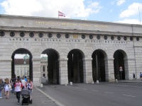Це «врата замку» (Бургтор) або «врата героїв» (Хельдентор). Немає вже стіни, в якій вони були воротами. Побудовані у 1821-1824 роках на місці будівлі, зруйнованої французами у 1809 році. Спочатку Пітер Нобель проектував ворота як пам’ятник битви проти Наполеона при Лейпцигу. Ворота мають п’ять арок. Середньою аркою мала право користуватись виключно імператорська сім’я. у 1933-1934 роках Рудольф Вондрачек трансформував врата в меморіал австрійським солдатам, які загинули під час Першої Світової війни (звідси назва «врата героїв»).
