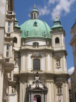 Потім за проектом Лукаса фон Гильдебрандта була побудована центральна будівля за аналогією церкви Св. Петра в Римі. До 1733 року з боків центральної будівлі були зведені дві похилі вежі, Андреа Альтомонте створив портальну прибудову.