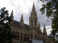 Для нової ратуші, як і для багатьох будівель, побудованих в цей час на прокладеній замість міської стіни вулиці Рінгштрассе, був обраний еклектичний стиль. Фасад будівлі являє собою чудовий екземпляр світської споруди у неоготичному стилі. Зовнішній вигляд виконаний у традиціях фламандських готичних ратуш, натякаючи на середньовічні міські свободи. Ратуша має три вежі: центральну, висотою 105 метрів і дві менші (61 метр). Сім дворів ратуші надають будівлі вигляд барочного палацу. Із цих семи внутрішніх дворів найбільший - аркадний двір, в якому проводяться концерти Віденського річного музичного фестивалю.