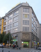 Був побудований в період з 1954 по 1956 рік на місці знищеного в результаті бомбардування будинку на розі. Торговий дім був побудований за проектом архітектора Йозефа Грубого (Josef Hrubý) в строгому стилі неокласицизму п'ятдесятих років, в основі якого лежать традиції довоєнного функціоналізму. Вертикально структурований фасад обкладений травертином, на 2-му поверсі над входом розташований зроблений з піщанику рельєф скульптора Бартунека (Bartůněk), що символізує алегорію текстильної промисловості.