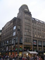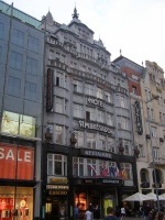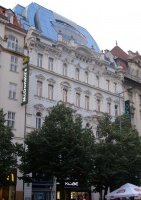 Індивідуальний проект з орієнтальними елементами, реалізований в 1912 році архітекторами Ріхардом Кленкой (Richard Klenkа) і Франтишеком Вейром (Františеk Weyr). Будівля з пасажами має залізобетонну конструкцію. До 1924 року готель називався «Пасаж» (Passage), в ньому розміщувався кінотеатр «Пасаж» а також відоме кабаре «Альгамбра» (Alhambrа).