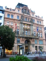 Палац в стилі необароко був побудований в 1895 році за проектом архітекторів Освальда Поливки (Osvald Polívkа) і Бедржиха Омана (Bedřich Ohman) спочатку для страхового товариства «Assicurazioni Generali». Фасад будинку прикрашений кам'яними і бронзовими скульптурами Станіслава Сухарди (Stanislav Suchardа), Богуслава Шнірха (Bohuslav Schnirch), Антоніна Прохазки (Antonín Procházkа), Ченька Восміка (Čeněk Vosmík) і Франтішека Странского (Františеk Stránský).