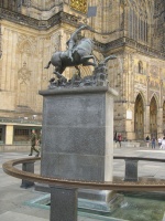 На третьому подвір’ї Празького Граду на сучасному круговому фонтані роботи Плечника встановлено копію статуї Святого Георгія (Socha svatého Jiří), що вражає дракона. Оригінал був виготовлений в 1373 році і став першим кінним пам'ятником Центральної Європи. У XVI столітті фігура святого серйозно постраждала, її довелося повністю відновлювати. Зараз площу прикрашає копія, поставлена на кам'яний постамент. Оригінал зберігається в лапідарії Народного музею.