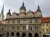 На фасаді палацу Ви можете побачити фреску із зображенням Діви Марії. Цікава історія, пов'язана з нею. У 15 столітті в Празі орудували мародери з армії Максиміліана Баварського. Господар будинку уникнув їх нападу завдяки тому, що помістив на фасаді картину, що змальовує Діву Марію. З тієї пори вона захищає будинок.