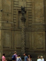 Знаменита колона стоїть прямо на розі Костелу св. Франциска. Біля основи колони ще збереглася невелика частина бруківки того часу. Це найстаріша кам'яна бруківка в Празі. На колоні височіє статуя св. Вацлава – покровителя всіх винарів.