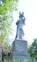 Біля мосту через річку Тетерів із сторони Києва на високому скелястому березі встановлений класичний пам’ятник епохи соцреалізму – жінка з дитиною.