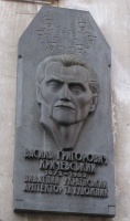 Меморіальна дошка встановлена у 1997 році. Скульптор Ю.Багаліка, архітектор Р.Кухаренко.