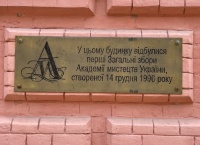 м. Київ. Меморіальна дошка на честь перших загальних зборів Академії мистецтв України.