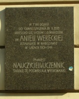 м. Варшава. Меморіальна дошка ліцею і гімназії ім. Анелі Верецької.