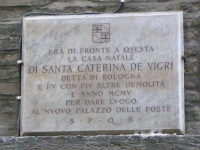 м. Болонья. Меморіальна дошка на місці будинку Санта-Катерина де Вігрі.